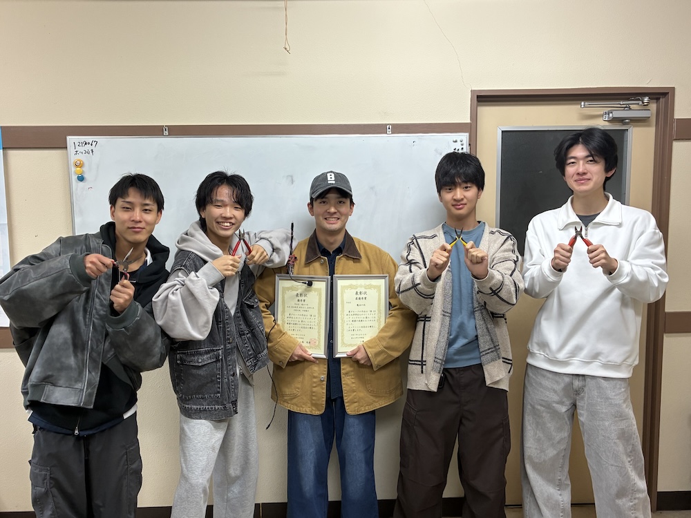 2025年12月13日に開催された,第23回 3大学学生ものづくり・アイディア展in富山(富山大,新潟大,長崎大の3大学が参加)において,工学部工学科電気電子工学コース3年の青木秋里さん,河原大地さん,鈴木正人さん,深津仁彦さん,生命工学コース1年の今関優斗さんによる「魔法の杖」が最優秀賞を受賞しました。音声認識・電気回路・周波数音楽理論・プログラミングといった様々な分野を融合した内容で,アイディアと実現に向けた工夫が評価されました。